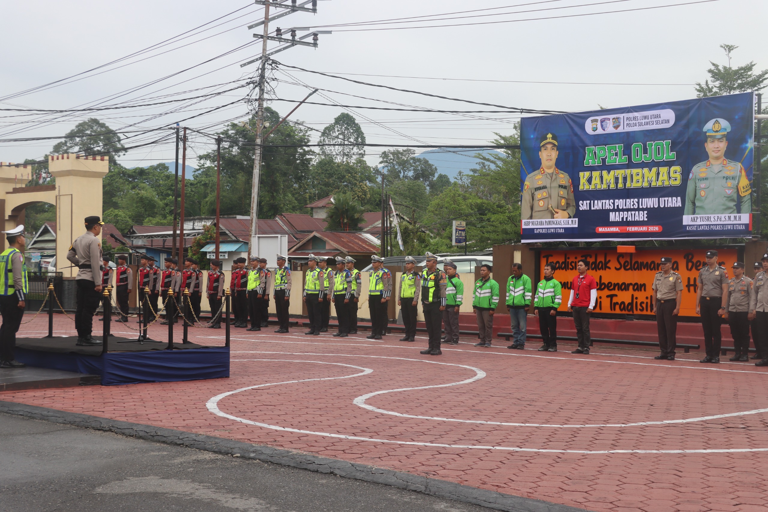POROSTENGAH.COM | LUWU UTARA – Satuan Lalu Lintas (Sat Lantas) Polres Luwu Utara menggelar Apel Ojol Kamtibmas “Mappatabe” di Lapangan Apel Mapolres Luwu Utara, Rabu (11/2/2026). Kegiatan tersebut berlangsung dalam suasana tertib, penuh semangat kebersamaan serta komitmen bersama untuk mewujudkan keamanan dan keselamatan berlalu lintas di wilayah Kabupaten Luwu Utara.