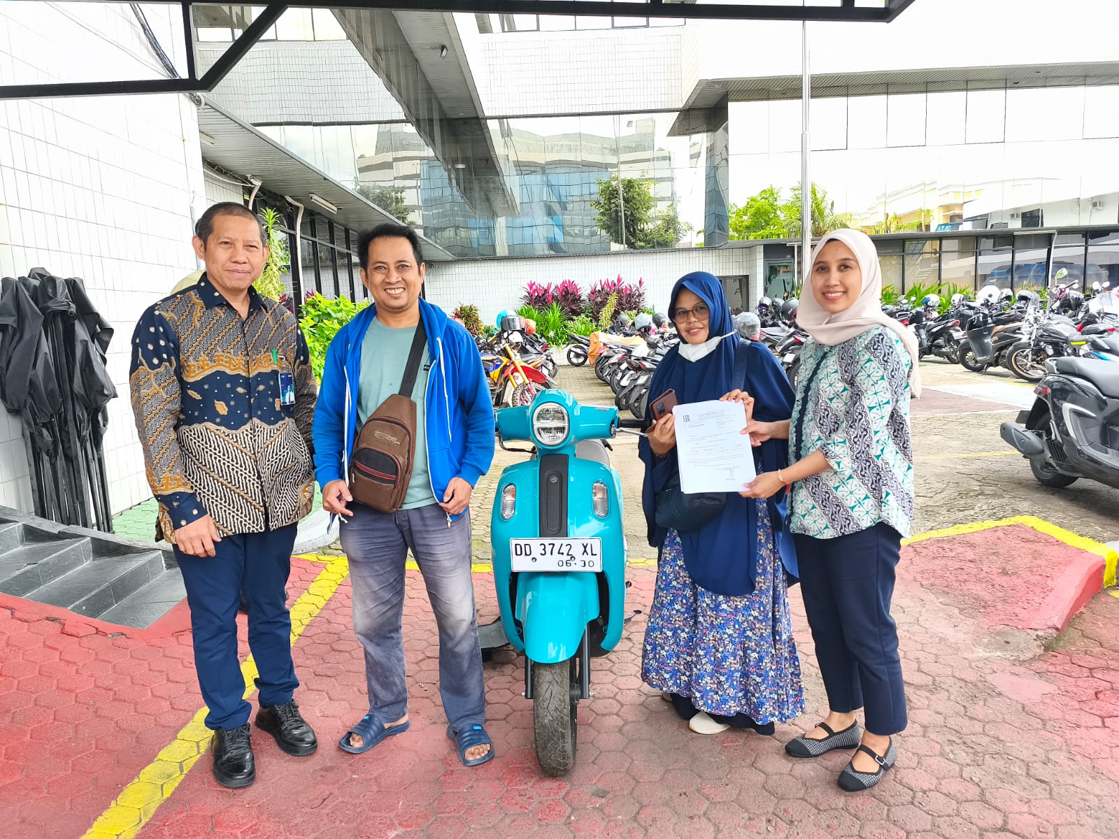 MAKASSAR | POROSTENGAH.COM – Nasabah Bank Rakyat Indonesia (BRI) BO Ahmad Yani Makassar menerima hadiah utama Program Undian Panen Hadiah Simpedes, Selasa (2/12/2025). Pemenang bernama Haris berhak membawa pulang satu unit motor Yamaha Fazzio Neo.