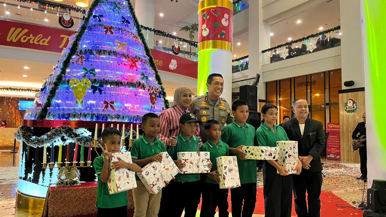 POROSTENGAH.COM, Makassar – Kepala Kepolisian Daerah (Kapolda) Irjen Pol. Djuhandhani Rahardjo Puro, S.H., M.H. menyerahkan kado natal kepada puluhan anak panti asuhan dalam kegiatan Christmas Light on yang digelar di Lobby Hotel Claro Makassar, Jumat malam (05/12/2025).