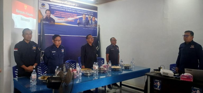 POROSTENGAH.COM | LUWU UTARA –Dewan Pimpinan Daerah (DPD) Partai NasDem Kabupaten Luwu Utara menggelar kegiatan konsolidasi struktur dan pendidikan politik bagi kader partai, yang berlangsung di Sekretariat NasDem, Kelurahan Bone, Kecamatan Masamba, Kabupaten Luwu Utara, Sabtu (27/12/2025).