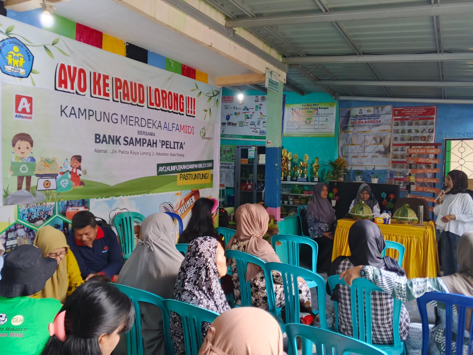 POROSTENGAH.COM, Makassar — Bank Sampah Pelita Bangsa resmi menjadi bagian dari program Kampung Merdeka Alfamidi. Peresmian berlangsung di Kota Makassar dan dihadiri perwakilan Dinas Lingkungan Hidup, Camat Rappocini, Lurah Balla Parang, Ketua Bank Sampah Pelita Bangsa, serta puluhan warga sekitar.