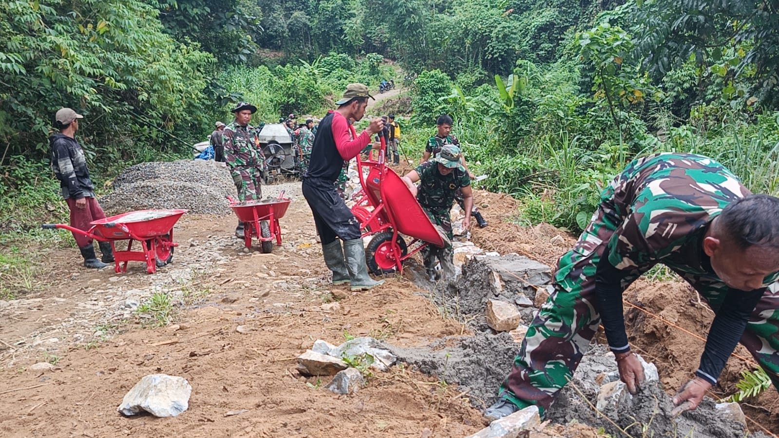 POROSTENGAH.COM | POLMAN – Semangat gotong royong antara TNI dan masyarakat terlihat nyata pada hari terakhir pelaksanaan pra-TNI Manunggal Membangun Desa (TMMD) ke-127 Kodim 1402 Polewali Mandar (Polman). Personel TNI bersama warga bahu-membahu mengerjakan sasaran fisik di ruas jalan poros Bulo–Lenggo, Desa Bulo, Kecamatan Bulo, Kabupaten Polman, Senin 9 Februari 2026)l.