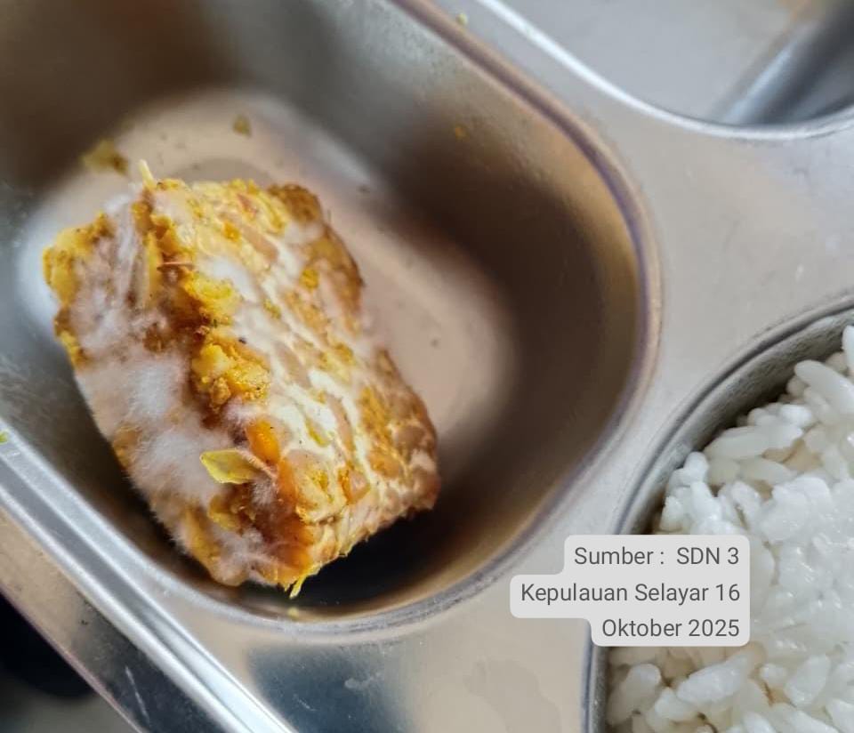 Sebelumnya, pihak UPT SDI Tanabau Nomor 80 Kepulauan Selayar mencatat tempe dalam menu MBG yang diterima sekolah ditemukan dalam kondisi berjamur dan berbau. Dalam berita acara penerimaan makanan, tercantum catatan khusus: “Tempe sudah membusuk dan berjamur.”