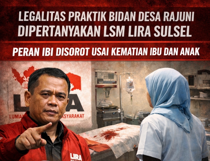 POROSTENGAH.COM | SELAYAR – Legalitas praktik Bidan Desa Rajuni, Kecamatan Takabonerate, Kabupaten Kepulauan Selayar, dipertanyakan Koordinator Wilayah (Korwil) Lembaga Swadaya Masyarakat (LSM) LIRA Sulawesi Selatan menyusul terjadinya kasus kematian seorang ibu dan bayinya pada 25 Desember 2025 lalu.