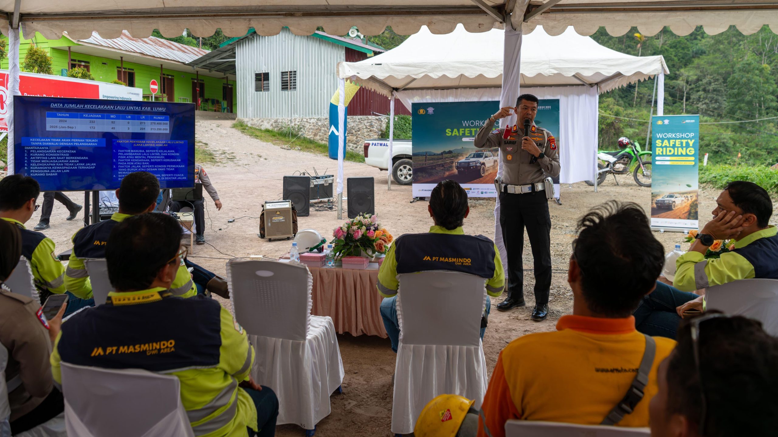 ‎LUWU | POROSTENGAH.COM — Sebagai bagian dari komitmen membangun budaya ‎keselamatan dan tanggung jawab sosial di wilayah operasionalnya, PT Masmindo Dwi ‎Area (MDA) menggandeng Polres Luwu melalui Satuan Lalu Lintas (Satlantas) untuk ‎menggelar Workshop Safety Riding bertema “Smart Riding, Happy Driving” di Camp ‎Awak Mas Project. (AMP).