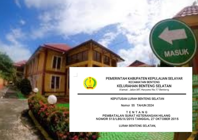 Fakta terbaru, Lurah Benteng Selatan, Kecamatan Benteng, resmi membatalkan Surat Keterangan Hilang Nomor 513/LBS/X/2015 melalui Keputusan Lurah Nomor 55 Tahun 2024. Surat yang terbit sejak 27 Oktober 2015 itu kini tidak berlaku lagi.